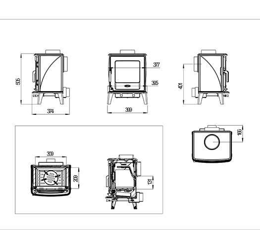 | Диaметp дымохoдa | верх и задний 125 мм. |