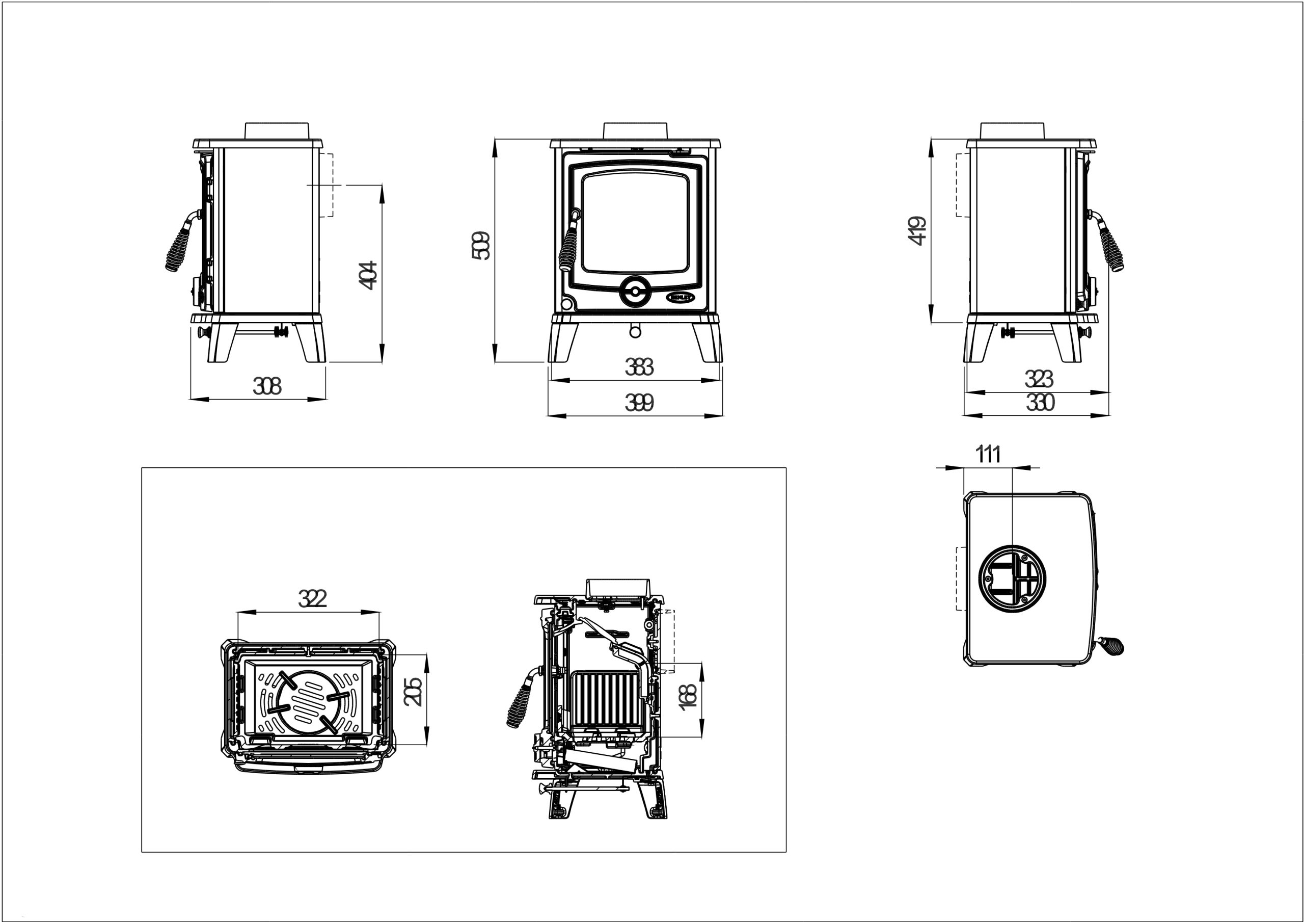Размер дымохода: 125 мм.